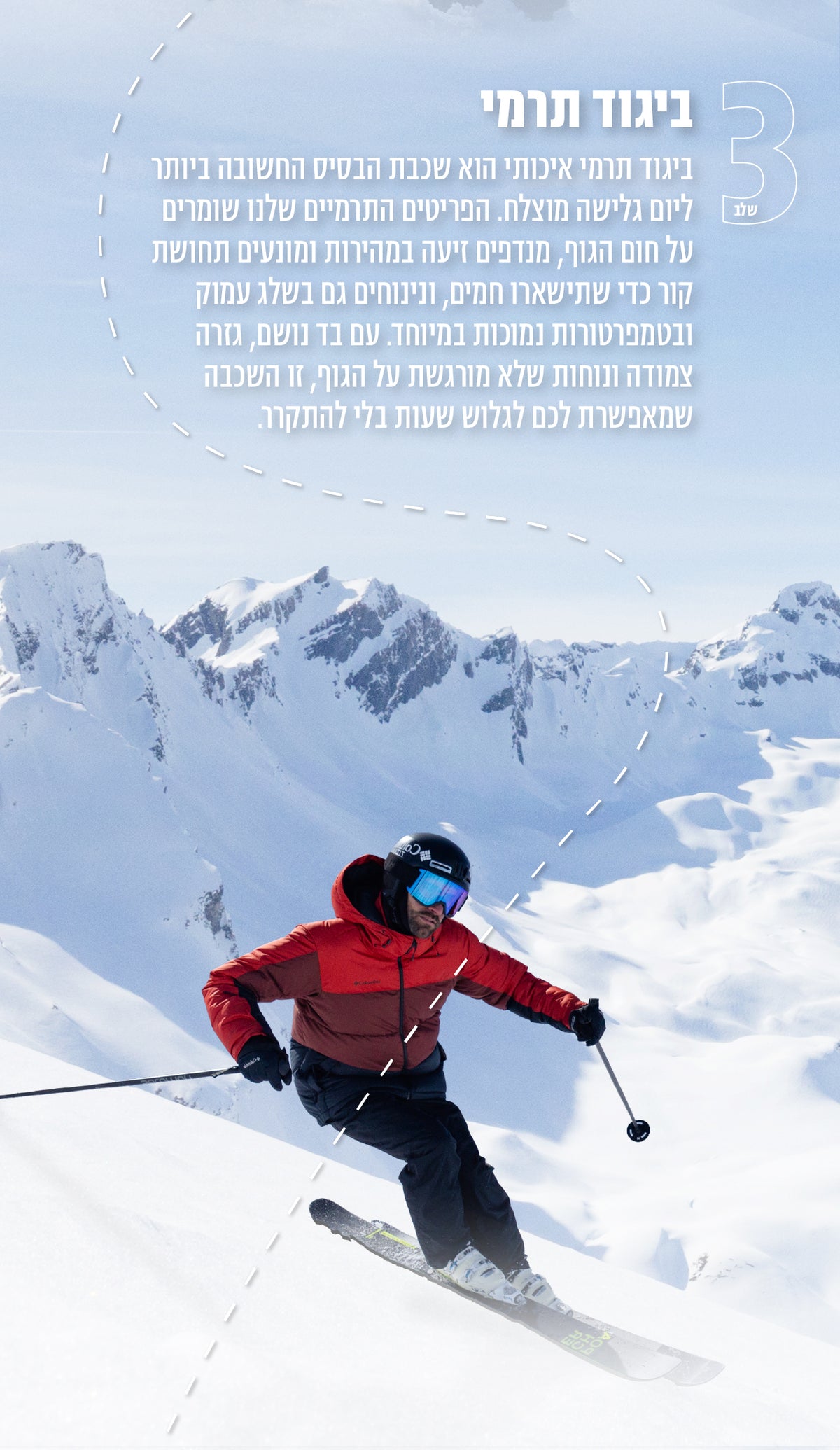 קולקציית העילית שלנו עם הטכנולוגיות המתקדמות ביותר מקסימום הגנה וביצועים בשלג.